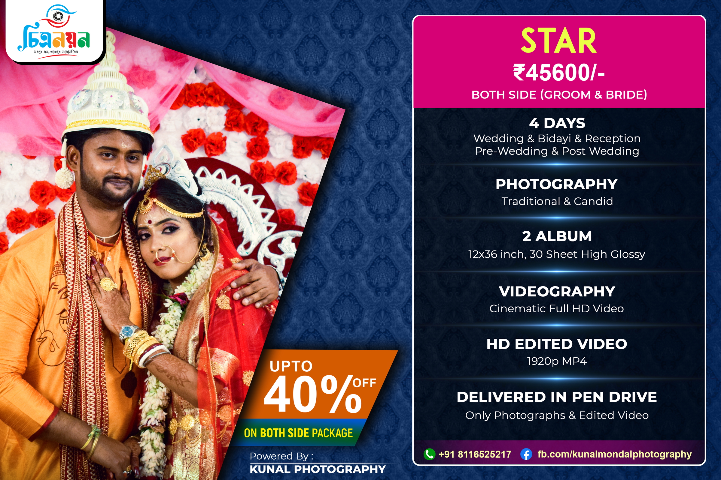 If you book both sides of the bride and groom together, you will get up to 40% discount